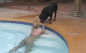 Big tit amateur sucking and fucking her dog
