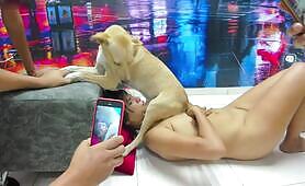 Niña guapa le chupa la verga a un perro