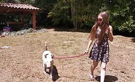 Jovencita rubia dando sexo a su perro
