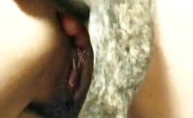 Horny wife using a fish as a dildo