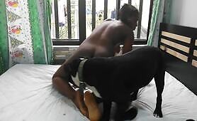 She fucks man and black dog